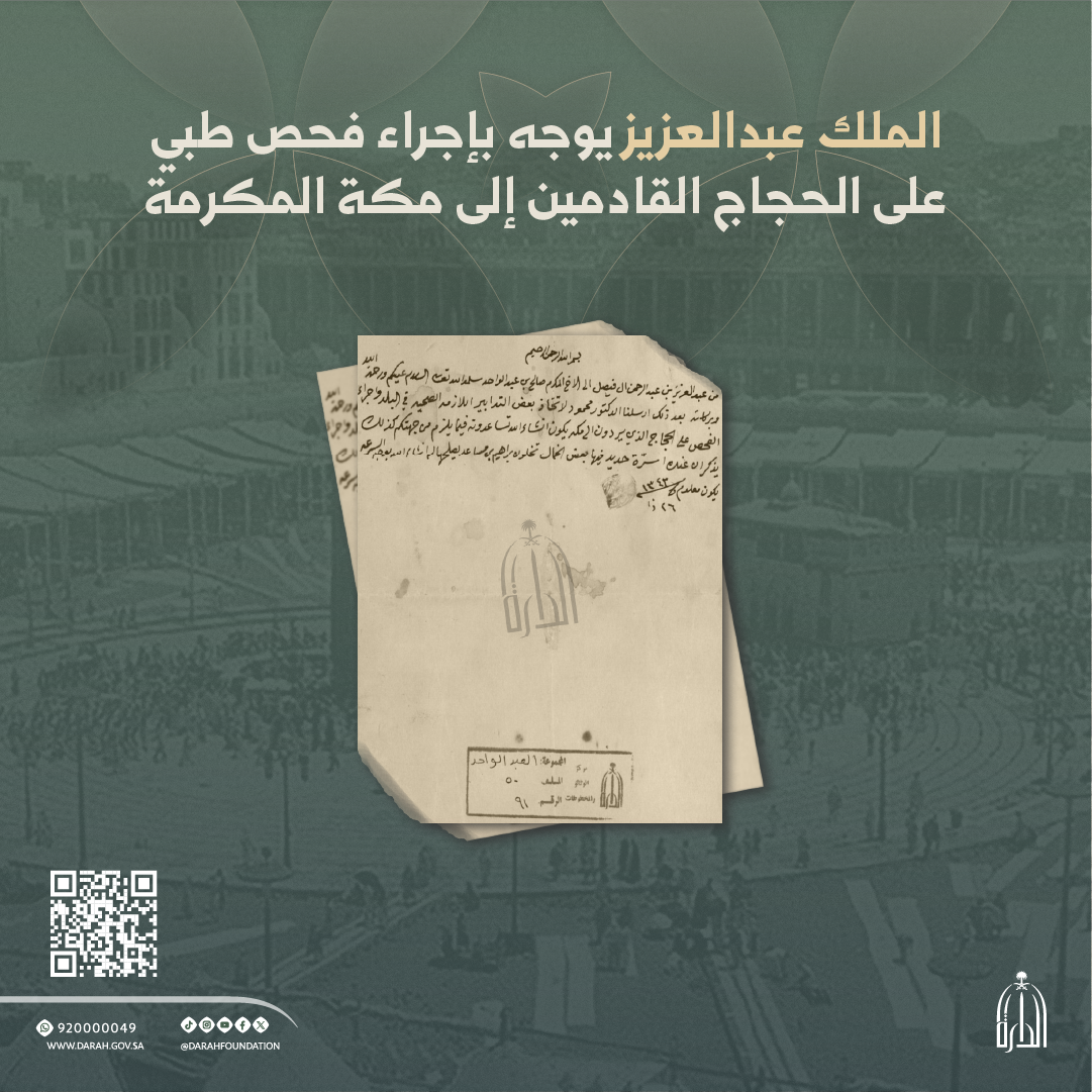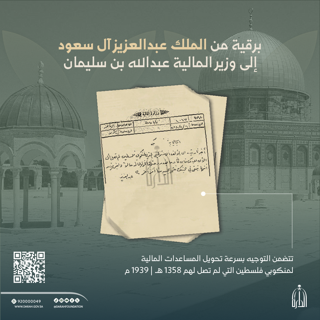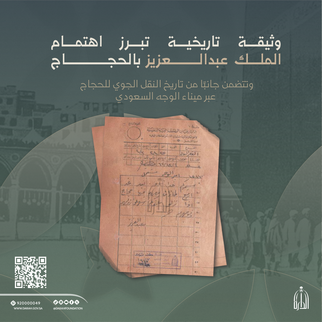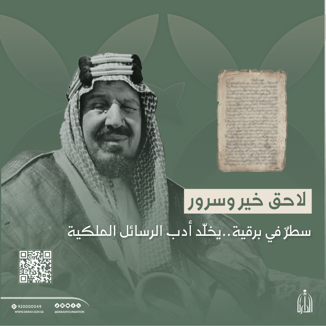 مبادرة معرفية من دارة الملك عبدالعزيز، تُتيـح الوثائق التاريخية ذات القيمة والأثر، بعد حفظها وفهرستها ورقمنتها، عبر بوابة بحثية وخدمات رقمية متكاملة، لتمكّن الباحثين والمهتمين من الوصول إلى مصادر موثوقة تُعزز الوعي بالتاريخ الوطني وتدعم البحث العلمي