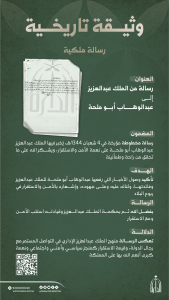 تعزيز الوعي بتاريخ المملكة من خلال إبراز الوثائق مصدراً موثقاً وأصيلاً